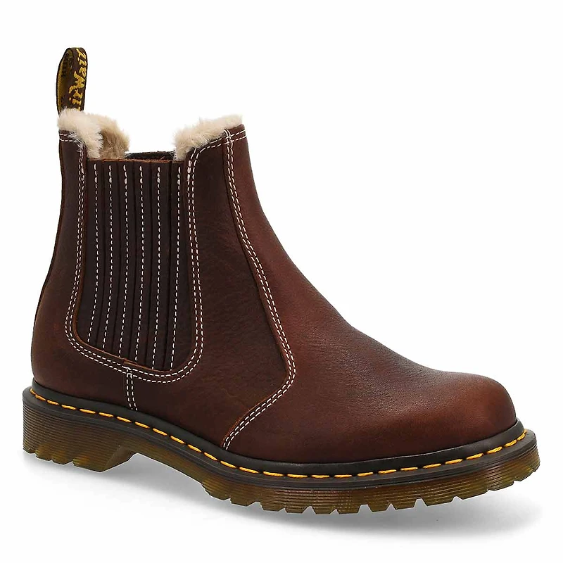 The Womens Lenore Chelsea Boots by Dr. Martens brings a classic town style to winter streets for a plush, trendy winter. The boots come in different leather uppers, sturdy and solid in any climate. The soft artificial fur is thick and warm, just right for colder days. Everything timeless about Docs is there the grooved edges, visible stitching and heel loop. Not to forget the iconic Air Wair air-cushioned sole.