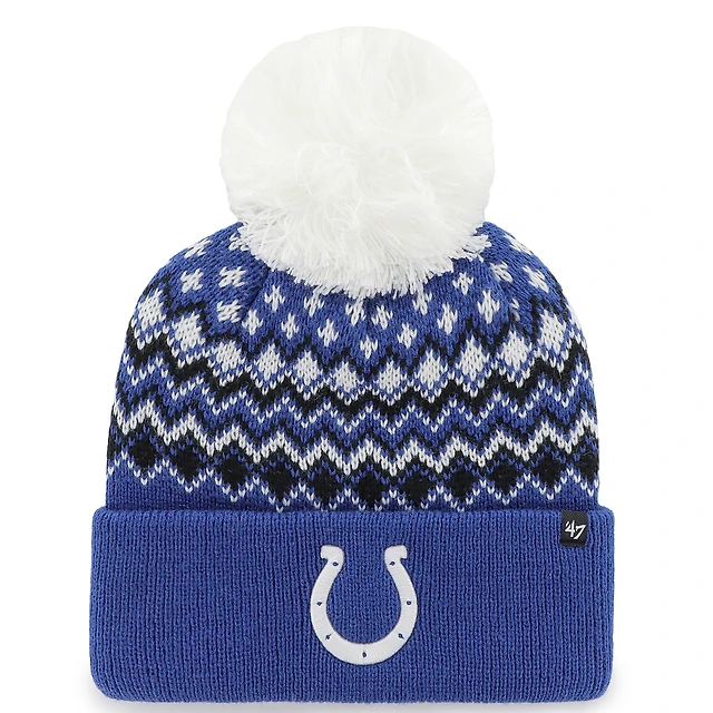 Women's '47 Royal Indianapolis Colts Elsa Cuffed Knit Hat with Pom