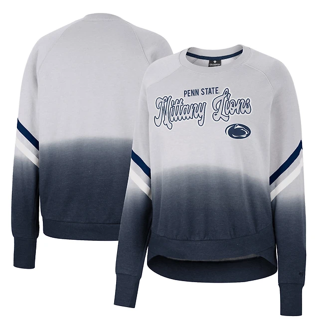 Women's Colosseum Gray Penn State Nittany Lions Cue Cards Dip-Dye Raglan Pullover Sweatshirt