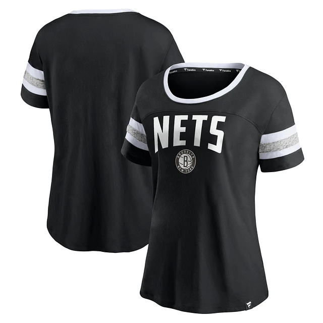 Women's Fanatics Black/Heathered Gray Brooklyn Nets Block Party Striped Sleeve T-Shirt