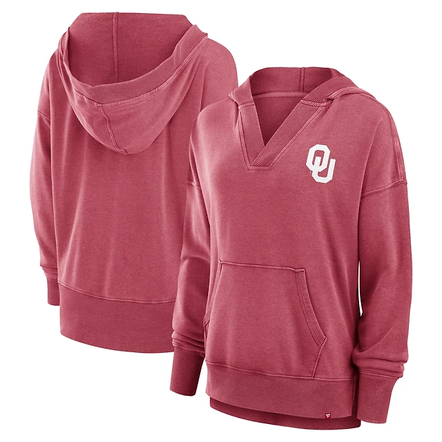 Women's Fanatics Crimson Oklahoma Sooners Initiative Snow Wash French Terry V-Neck Pullover Hoodie