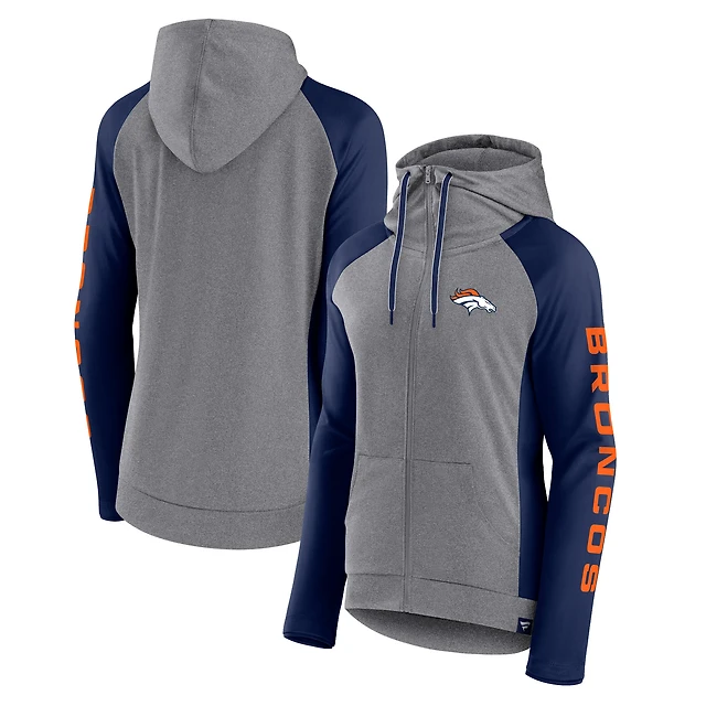Women's Fanatics Heather Gray/College Navy Denver Broncos Blind Side Lightweight Full-Zip Hoodie