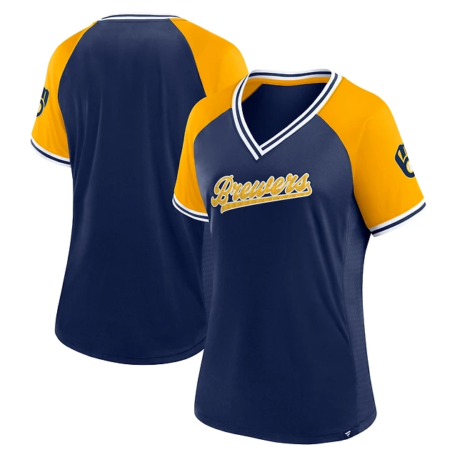 Women's Fanatics Navy Milwaukee Brewers Glitz & Glam League Diva Raglan V-Neck T-Shirt
