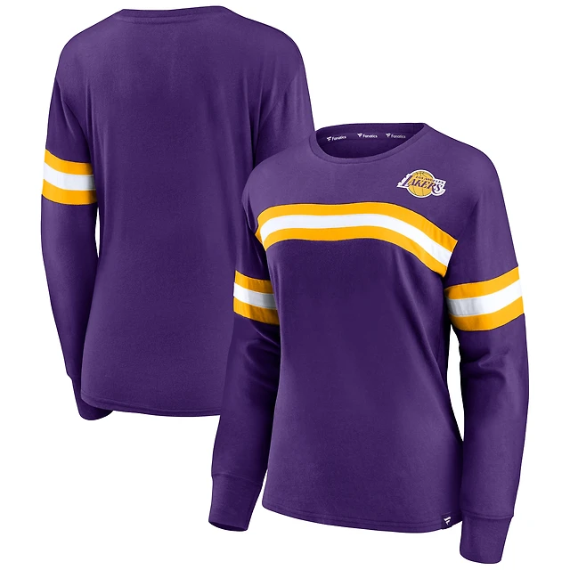 Women's Fanatics Purple Los Angeles Lakers Block Party Striped - Long Sleeve T-Shirt