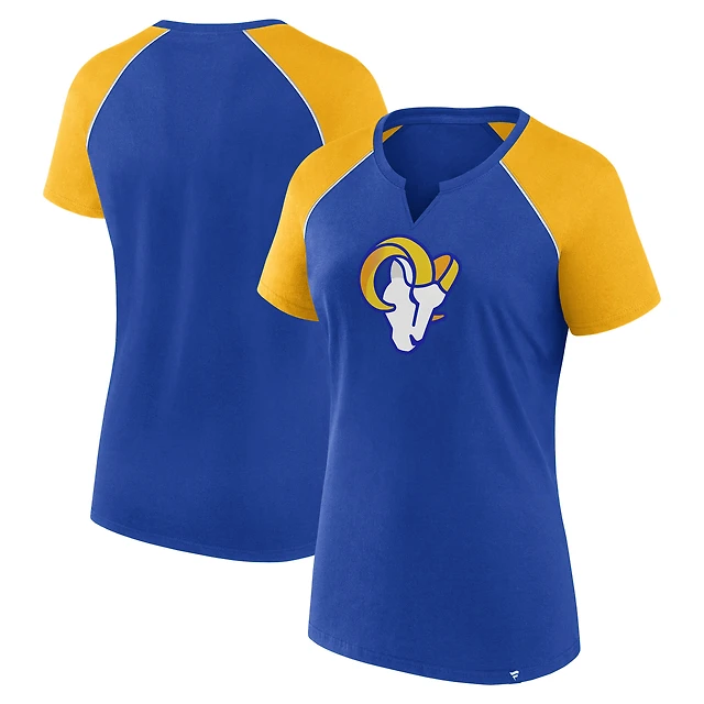Women's Fanatics Gold/Royal Los Angeles Rams Arch Raglan 3/4-Sleeve Notch Neck T-Shirt