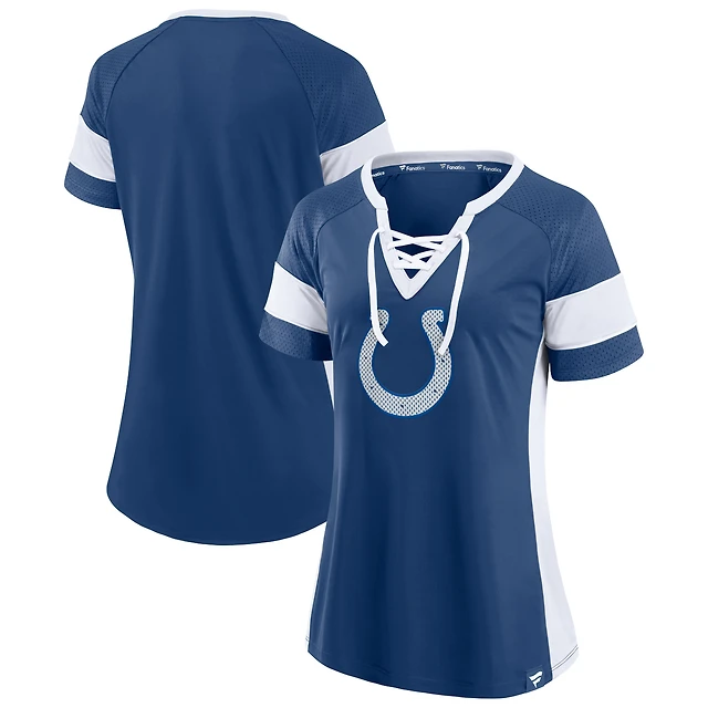 Women's Fanatics Royal/White Indianapolis Colts Team Draft Me Lace-Up Raglan T-Shirt