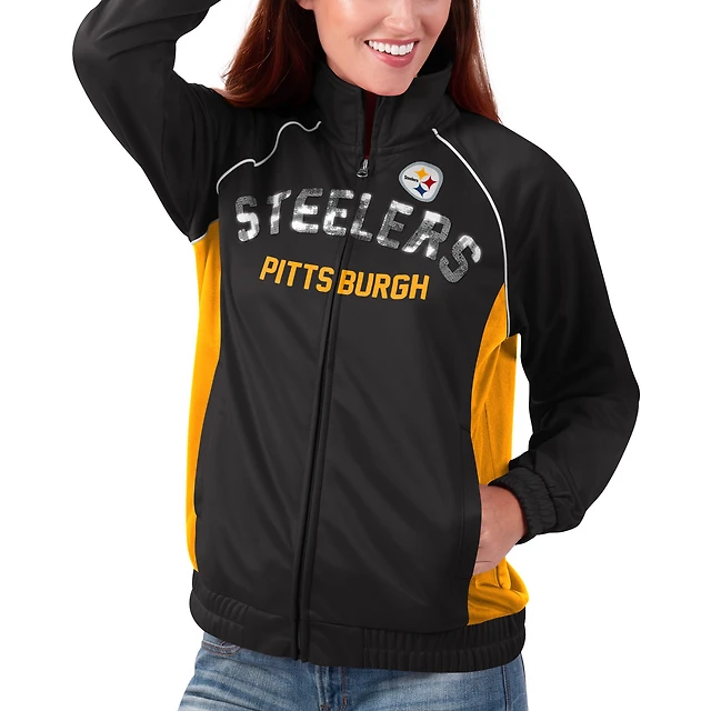 Women's G-III 4Her by Carl Banks Black Pittsburgh Steelers Backfield Raglan - Full-Zip Track Jacket