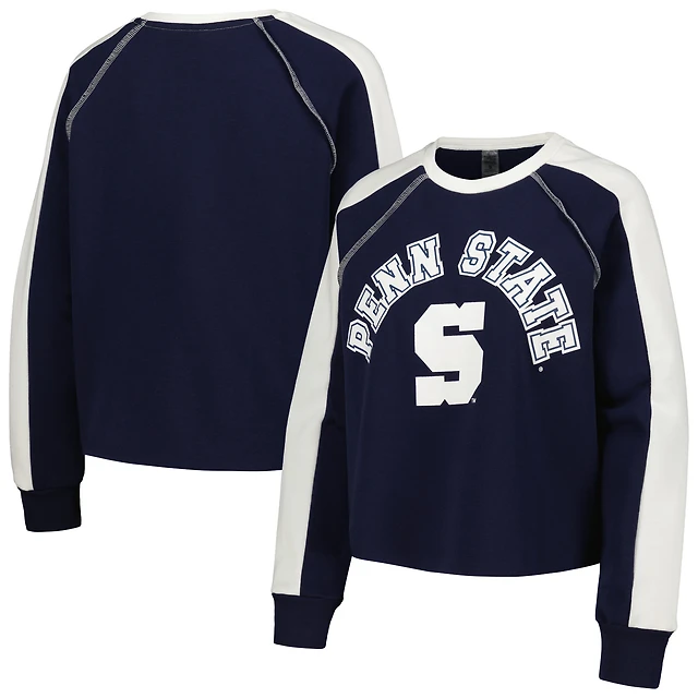 Women's Gameday Couture Navy Penn State Nittany Lions Blindside Raglan Cropped Pullover Sweatshirt