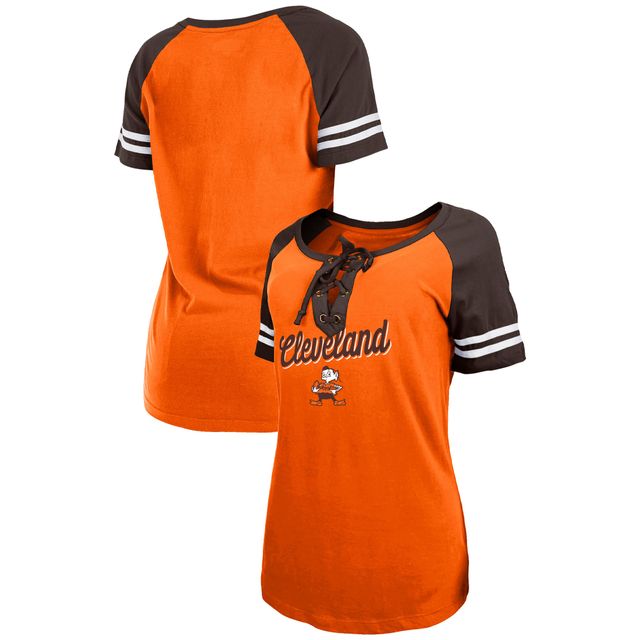 Women's New Era Orange/Brown Cleveland Browns Brownie The Elf Legacy Lace-Up Raglan T-Shirt