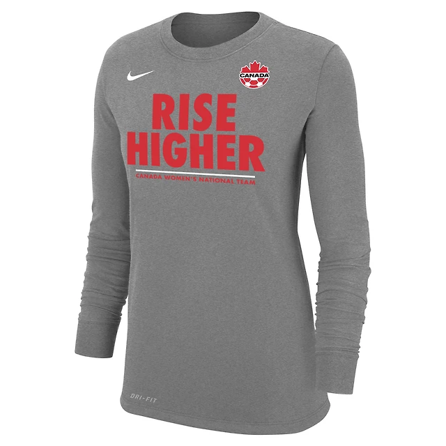 Women's Nike Gray Canada National Team Rise Higher Performance - Long Sleeve T-Shirt