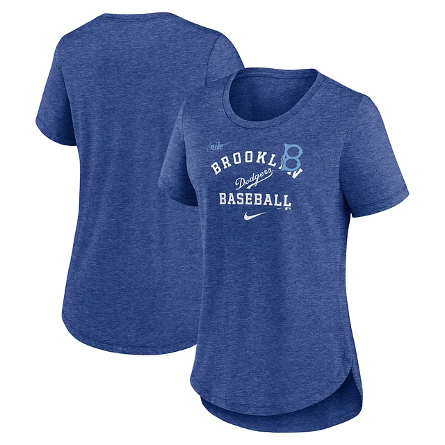 Women's Nike Heather Royal Brooklyn Dodgers Rewind Arch Mix Tri-Blend T-Shirt