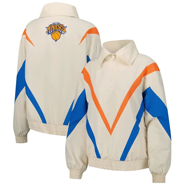 Women's Terez White New York Knicks Retro Chevron Ripstop Quarter-Zip Windbreaker Jacket