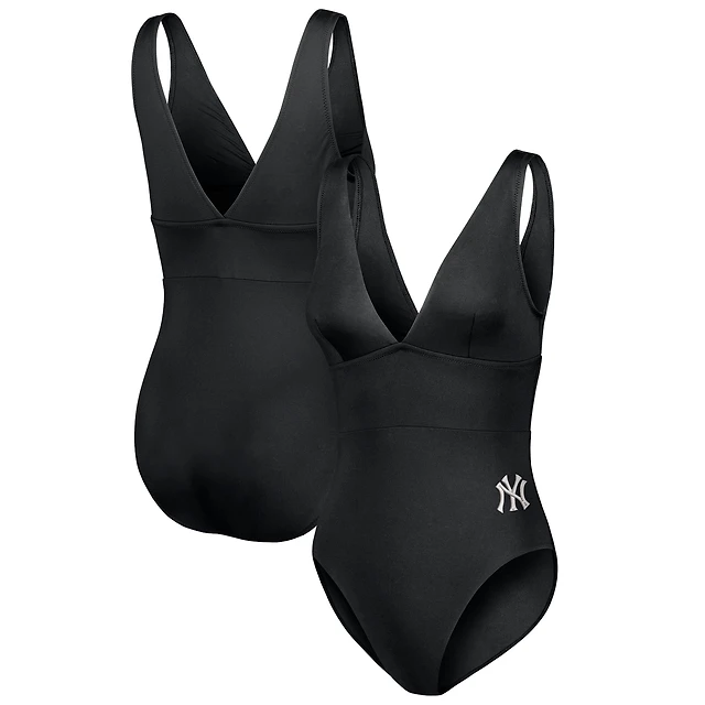 Women's Tommy Bahama Black New York Yankees Palm Modern V-Neck One-Piece Swimsuit