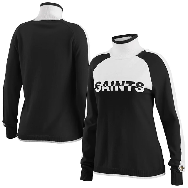 Women's WEAR by Erin Andrews Black New Orleans Saints Ski Raglan Pullover Sweater