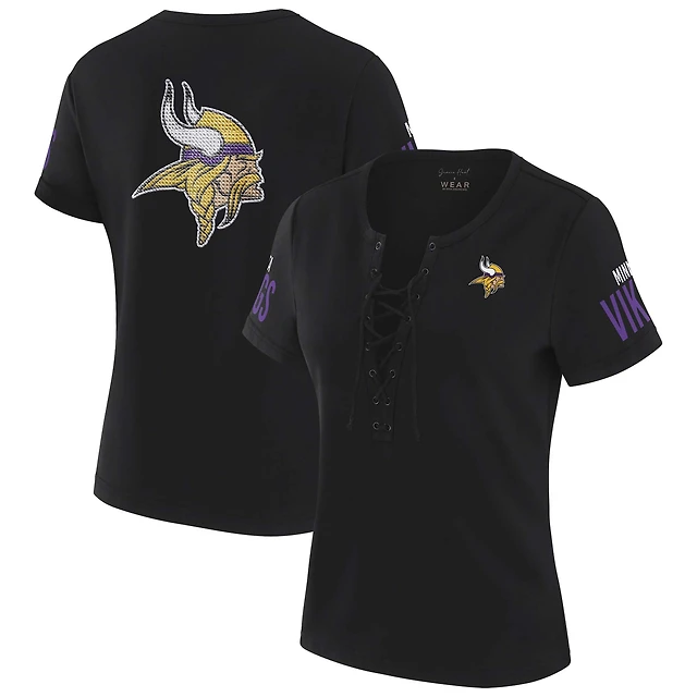 Women's WEAR by Erin Andrews x Gracie Hunt Black Minnesota Vikings Draft Me Lace-Up T-Shirt