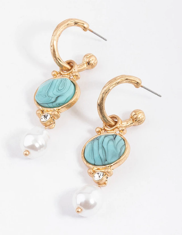 Worn Gold Facet Pearl & Turquoise Drop Earrings