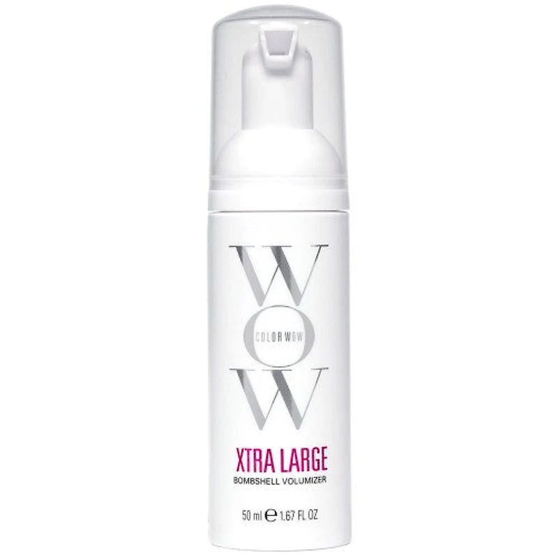 Color Wow Xtra Bombshell Volumizer  The foamy froth with fortifying Bamboo volumizes fine, thin, limp hair without damage, dehydration or weighing hair down. Thick, voluminous hair results last for days. Non-damaging, non-dehydrating, non-invasive hair volumizer Thickens strands without using the typical “thickening” ingredients such as alcohol, salt, or resins, that create volume by forcing up the cuticle so strands don’t lie flat Proprietary polymer/Bamboo blend surrounds each strand, mimicking “cuticle lifting” hair thickeners to create volume while allowing hair’s cuticle to remain closed and intact Hair feels natural and supple (not stiff, sticky or crispy) Gives flimsy, hard-to-style hair new “guts + grab” texture that can hold a style Texture, body and voluminous results last for days How To Use: Apply to damp hair. Dispense 2-3 pumps worth of foam into hands and pull through a section of hair from top to ends, continue until all hair is covered. Comb through to distribute evenly. Style. Can be blow-dried or air-dried.