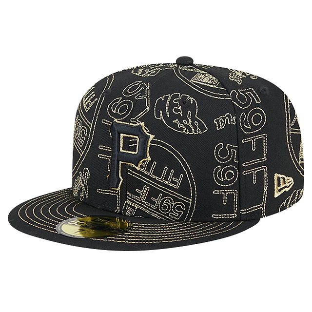 Men's New Era Black Pittsburgh Pirates 59FIFTY Day Allover Fitted Hat