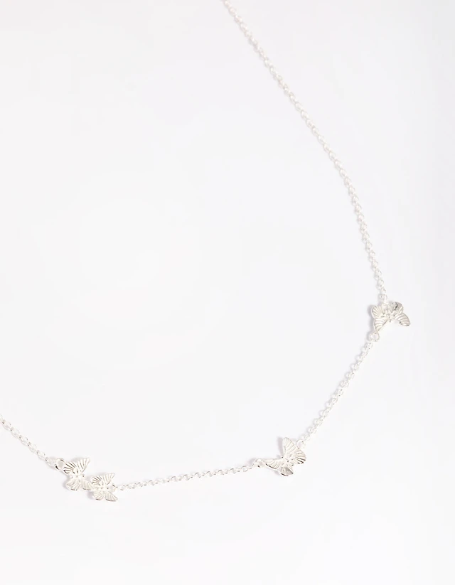 Gold Plated Sterling Silver Etched Butterfly Necklace