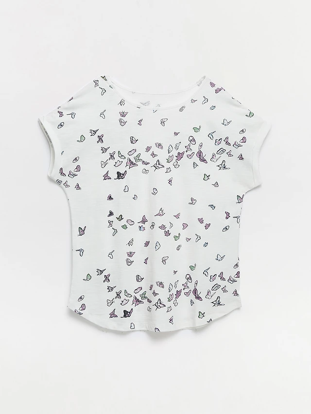 Petite Tie Sleeve Button-Back Dress in Blue/White
