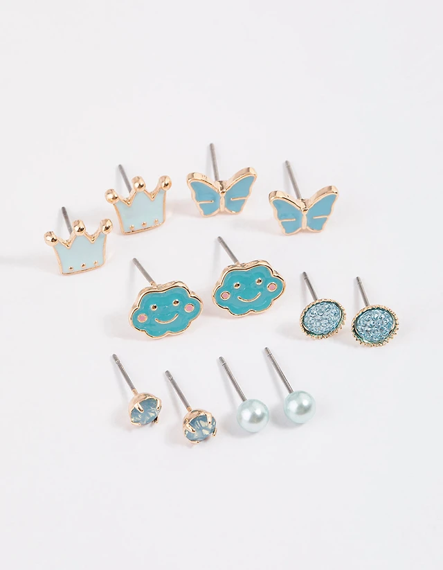 Kids Crown Butterfly Stud Earrings 6-Pack