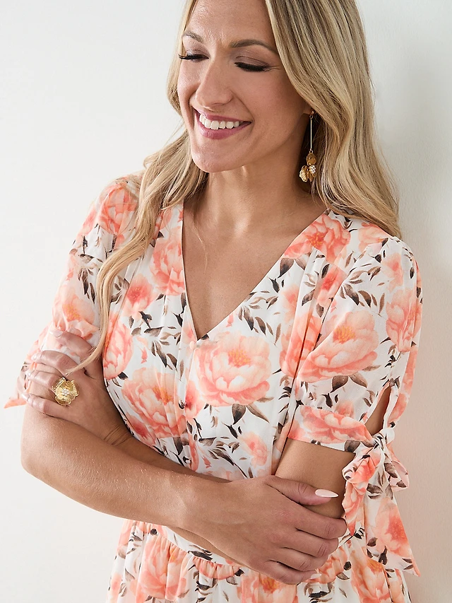 Knot Front V-Neck Top with Shoulder Detail
