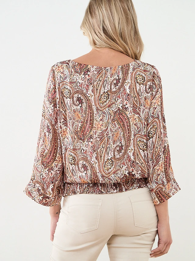 Petite Kimono Blouse with Smocked Hem