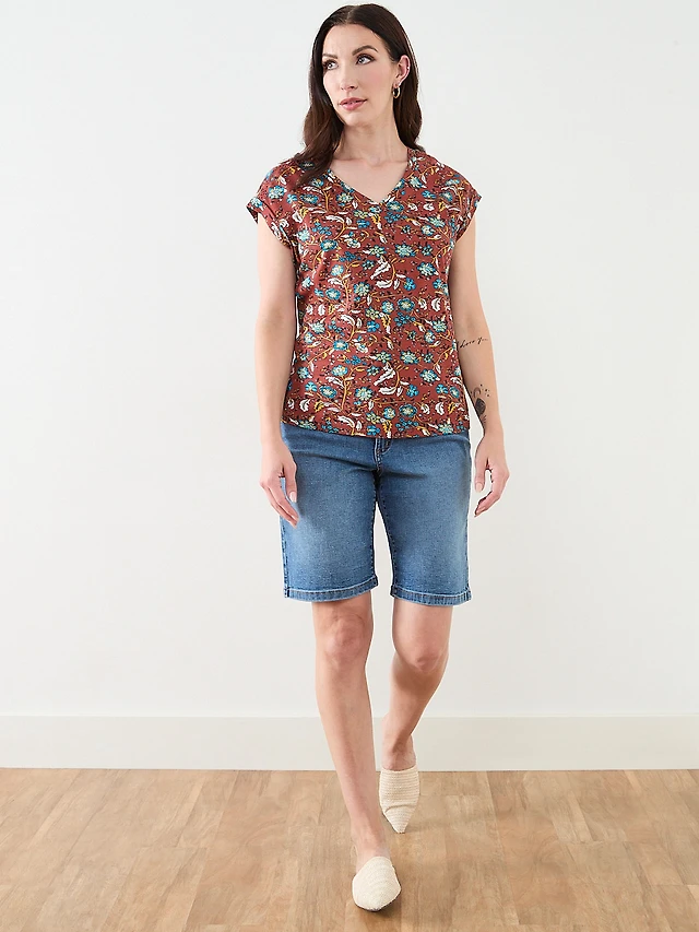 Petite Knit Shoulder Trim T-Shirt in Terracotta