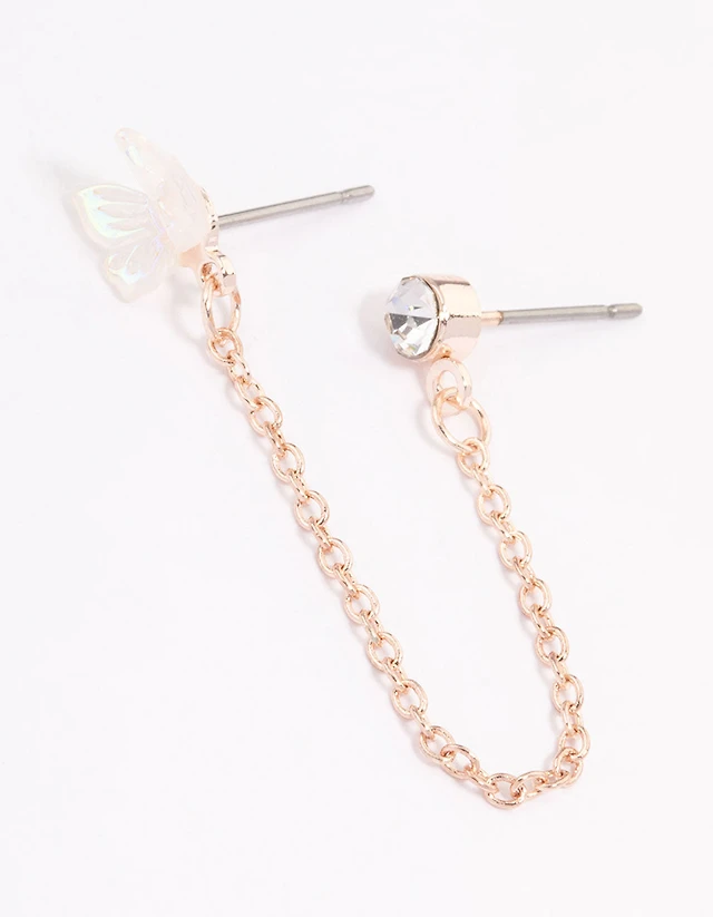 Gold Plated Surgical Steel Cubic Zirconia Butterfly Stud Flat Back