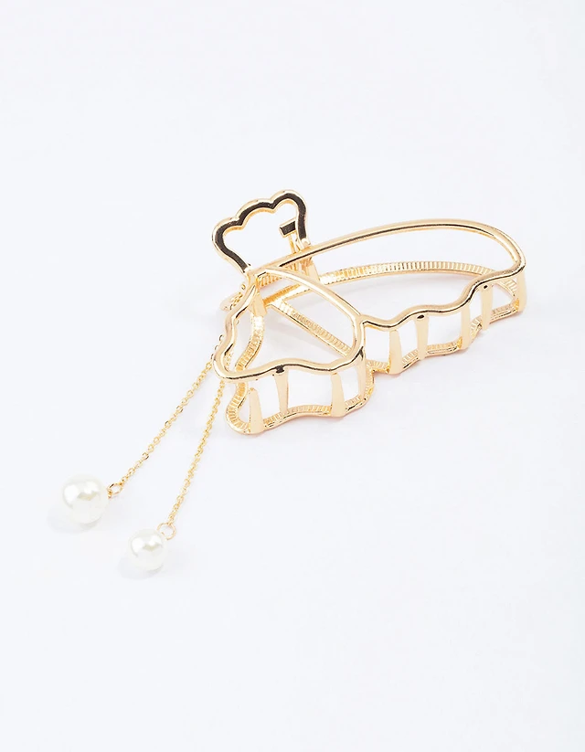 Gold Cubic Zirconia Bow Wave Hair Clip