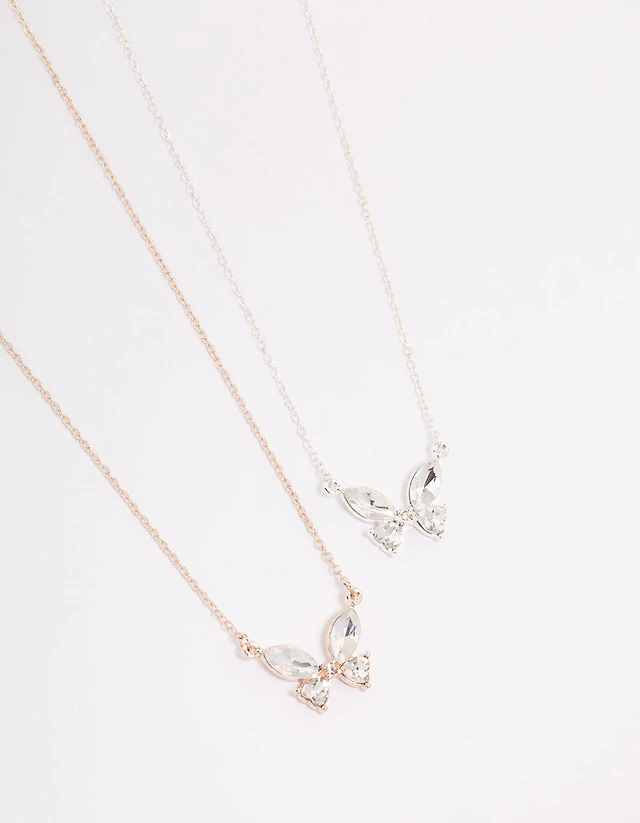Mixed Metal Couture Butterfly Necklace 3-Pack