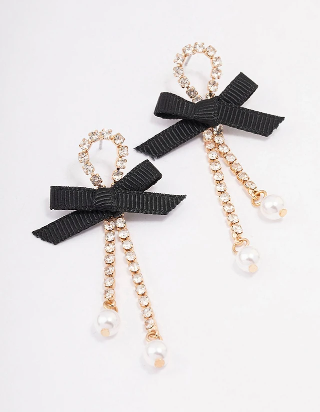 Black Fabric Organza Diamante Cup Chain Hair Bow Clip