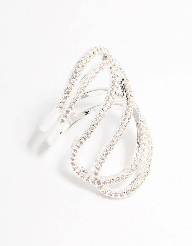 Lovely Silver Ribbon Cubic Zirconia Ring