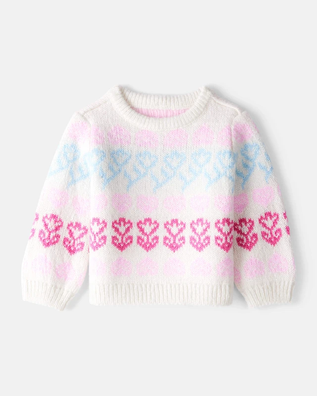Baby Girl Floral Fairisle Sweater- Pink/White