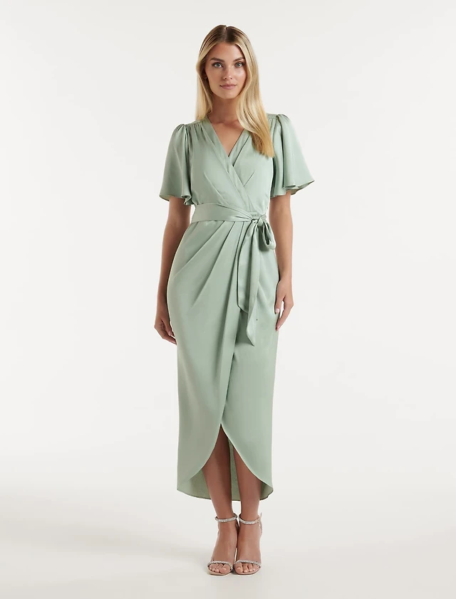 Chelsea Flutter Sleeve Satin Maxi