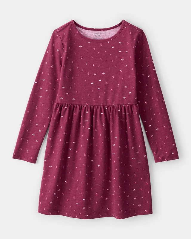 Kid Metallic Heart Pull-On Stretch Cozy Leggings - Purple