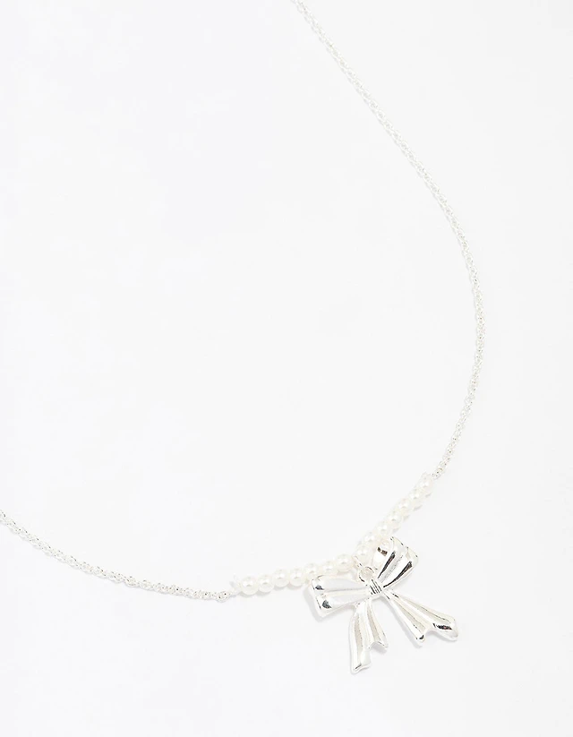 Gold Plated Sterling Silver Cubic Zirconia Bow Necklace