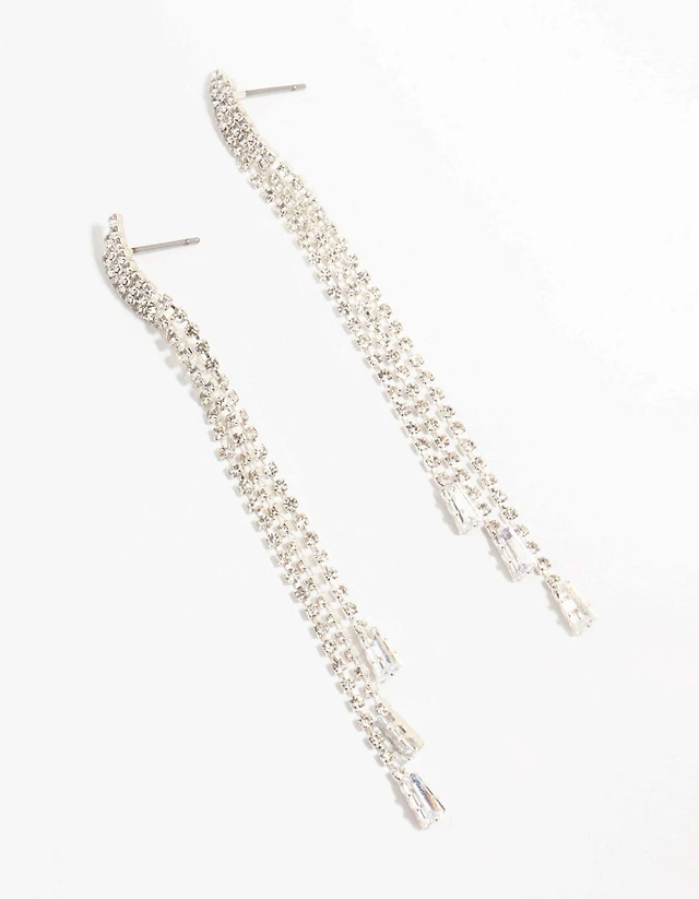 Pear-Shaped White Lab-Created Sapphire Dangle "Y" Necklace in Sterling Silver