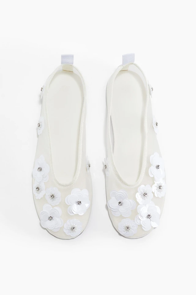 Appliquéd Mesh Ballet Flats