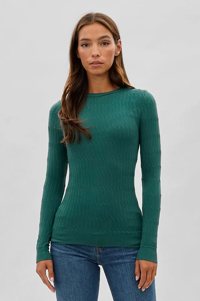 International INC Company Ribbed Crew Neck Long Sleeve Top - Green