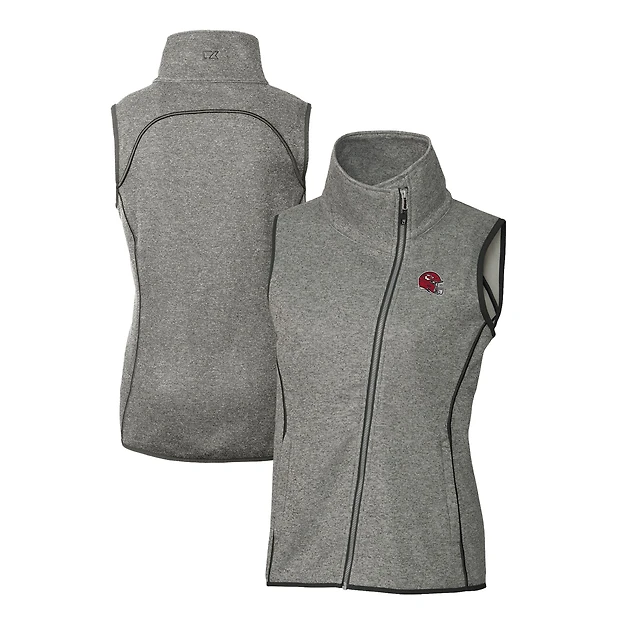 Women's Cutter & Buck Heather Gray Kansas City Chiefs Helmet Logo Mainsail Sweater-Knit Full-Zip Asymmetrical Vest