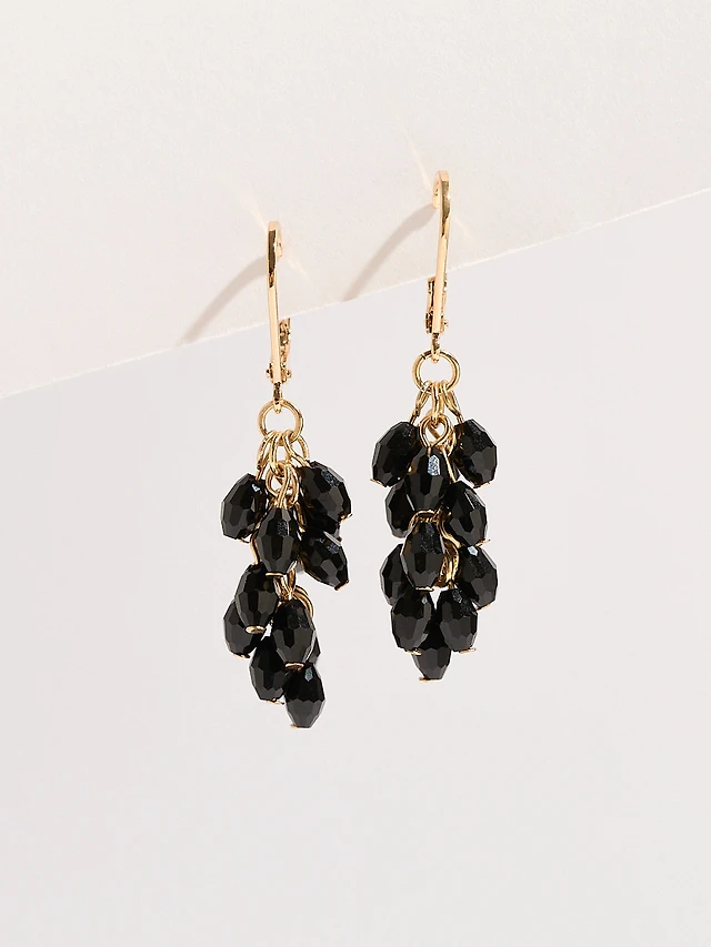 Black Cluster-Bead Gold Earrings