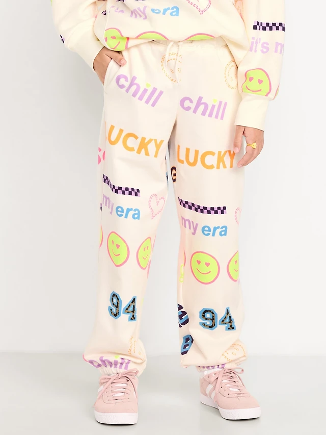 Printed High-Waisted Baggy Wide-Leg Jeans for Girls