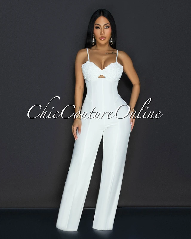 *Sabel White Sequins Feathers & Rhinestones Dress