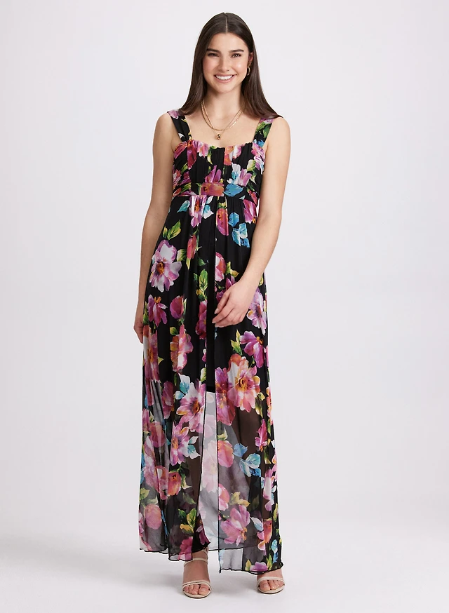 Beechers Brook Floral Tie-Neck Short Sleeve Blouse