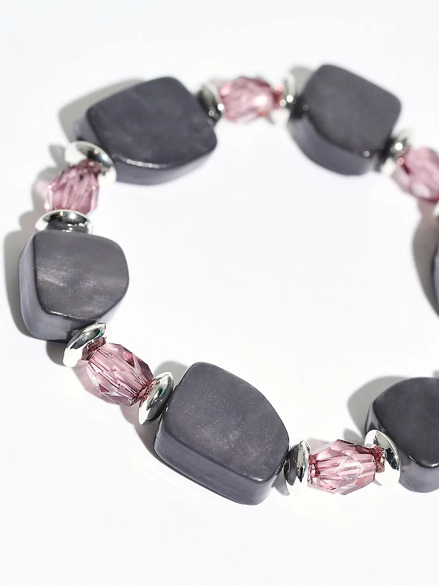Double-Layer Faceted-Stone Stretch Bracelet