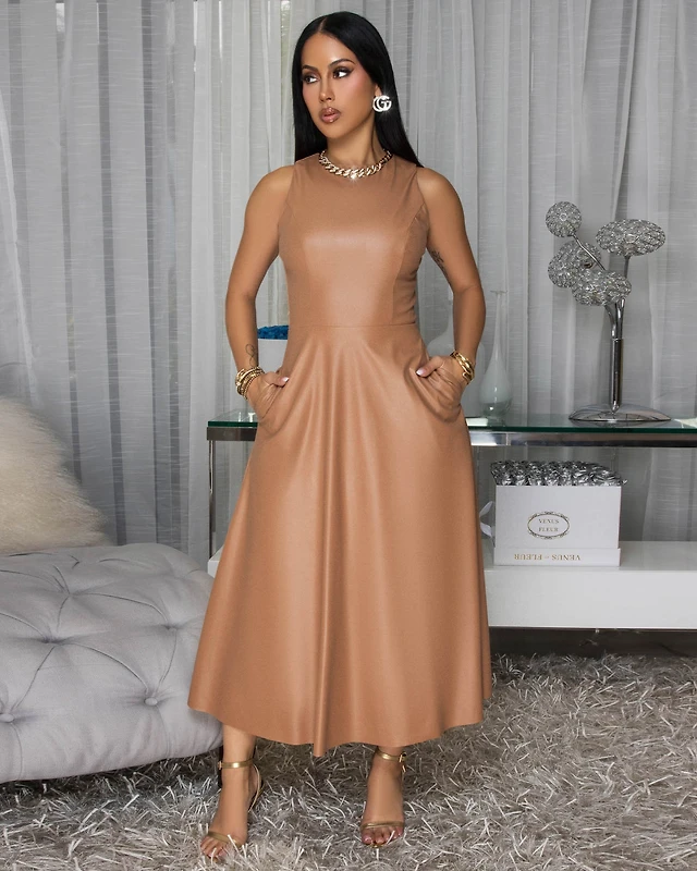 Rhoe Camel Faux Leather Midi Dress