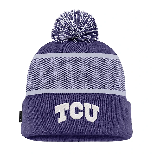 Men's Nike Purple TCU Horned Frogs 2024 Sideline Peak Cuffed Knit Hat with Pom
