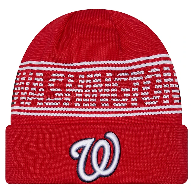 Men's New Era Red Washington Nationals Authentic Collection Cuffed Knit Hat