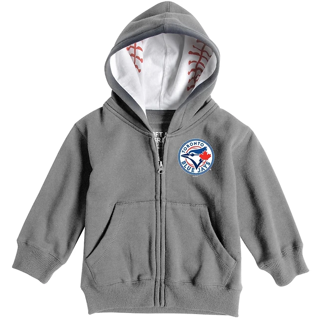 Toddler Soft as a Grape Heathered Gray Toronto Blue Jays Baseball Print Full-Zip Hoodie
